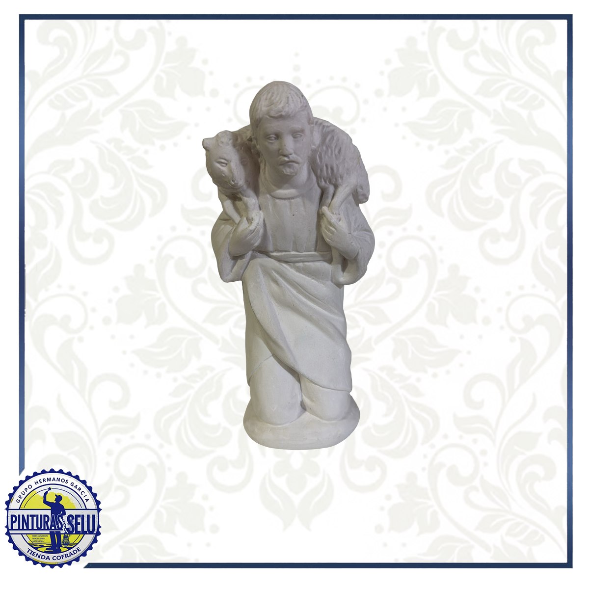 Esta figura está elaborada en una mezcla de escayola y marmolina, materiales que aportan resistencia, durabilidad y un acabado artesanal detallado. La escayola ofrece firmeza y ligereza, mientras que la marmolina permite trabajar los detalles con gran precisión, logrando un rostro expresivo, pliegues naturales en la ropa y una postura equilibrada y realista. Cada pieza es cuidadosamente modelada para reflejar la autenticidad del belenismo clásico.
