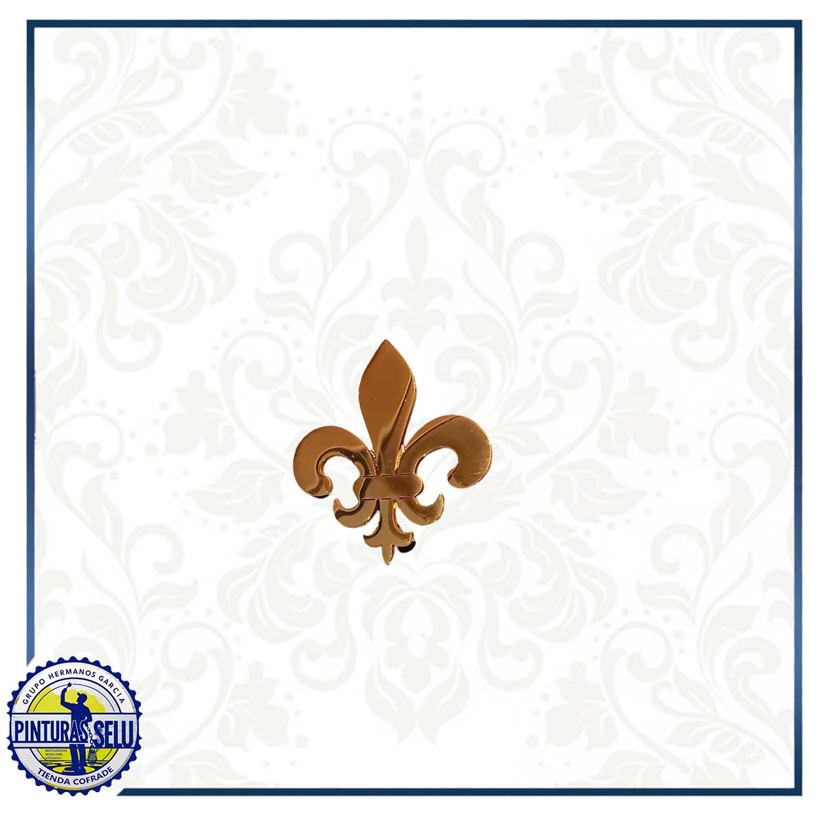 La Flor de Lis Dorada es un emblema de gran significado en la tradición cristiana y cofrade. Su diseño refinado, con acabado en dorado, representa la pureza, la fe y la Santísima Trinidad, siendo un elemento decorativo muy apreciado en hermandades y pasos procesionales.
